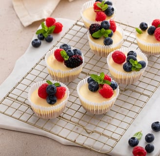 These easy-to-make cheesecake muffins are the perfect bite-sized sweet treat — silky, creamy, and bursting with classic cheesecake flavor. Customize them with lemon or orange zest, a swirl of melted chocolate, or top with your favorite fruit for a fun and delicious twist!